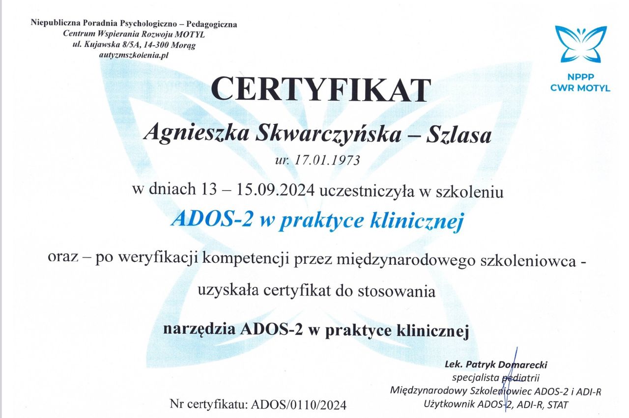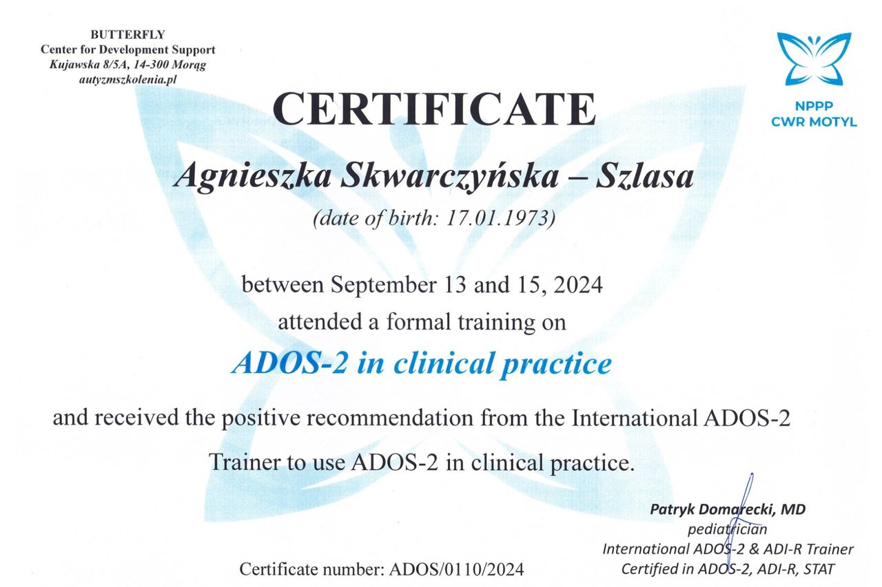 Prowadzę diagnostykę spektrum autyzmu oraz diagnozę ADHD u dzieci, młodzieży i dorosłych. W mojej pracy szczególnie zależy mi na budowaniu relacji opartej na szacunku, zaufaniu i współpracy. Tworzę bezpieczną przestrzeń do rozmowy, która pozwala lepiej zrozumieć siebie i wprowadzać trwałe, pozytywne zmiany.